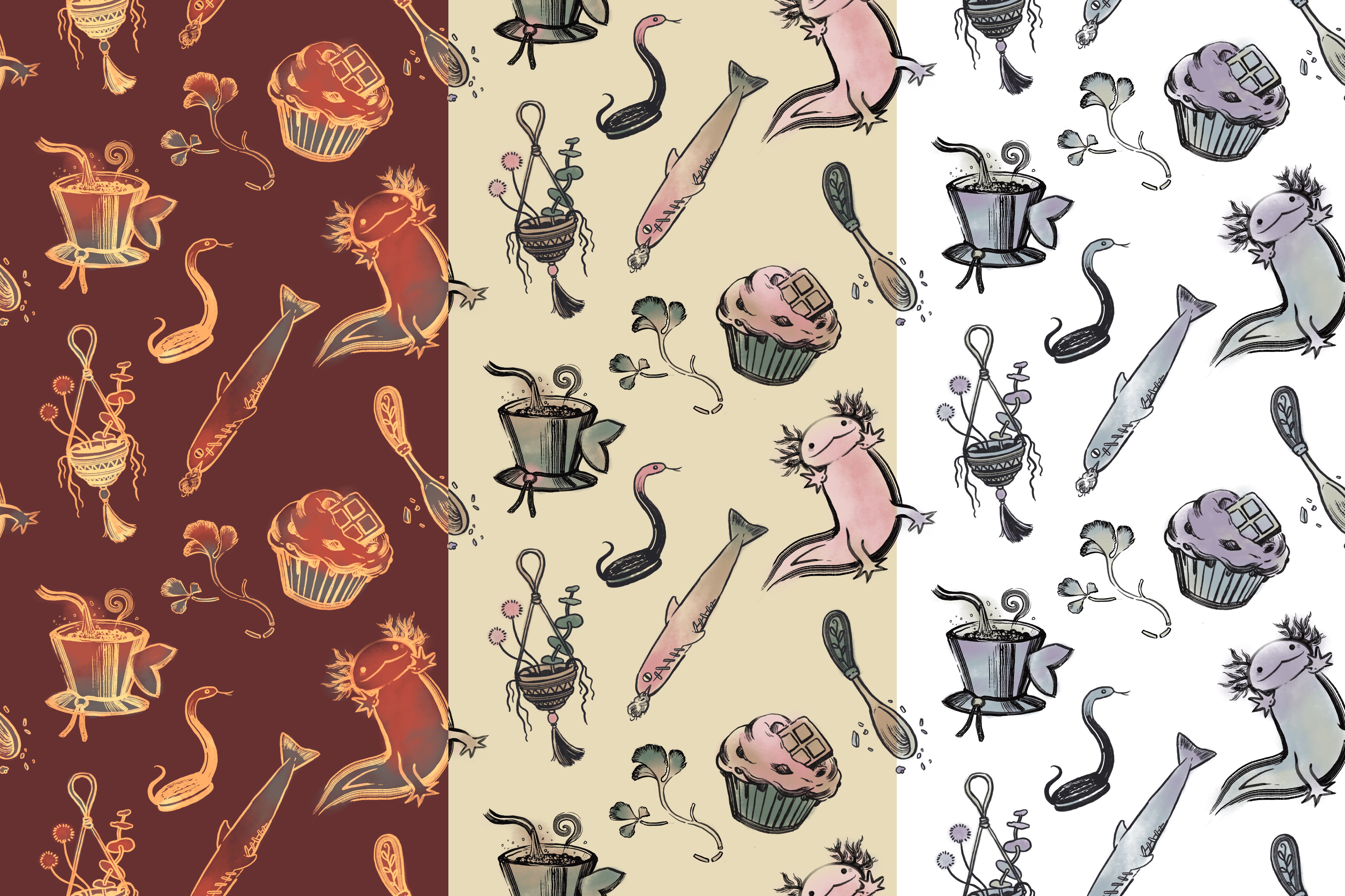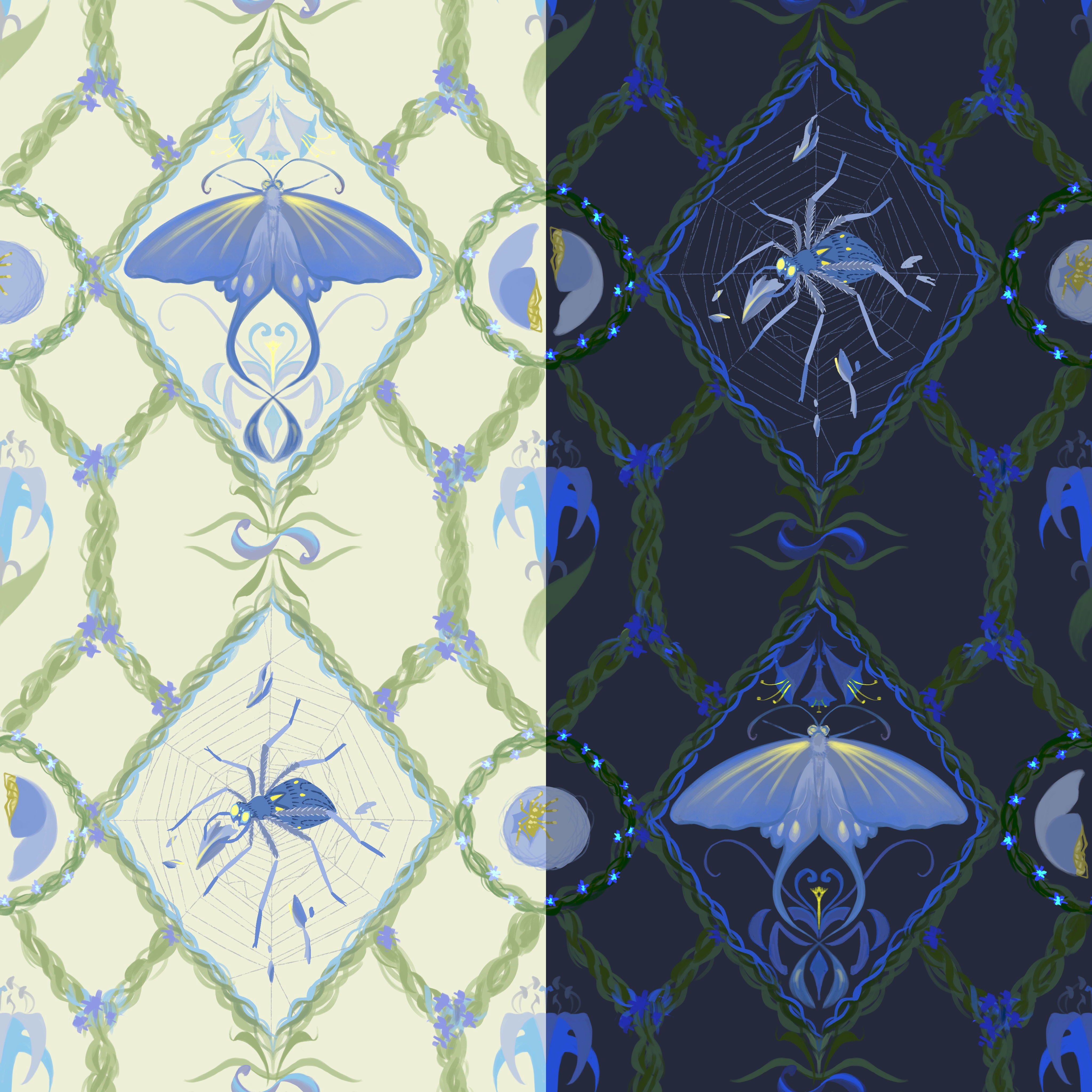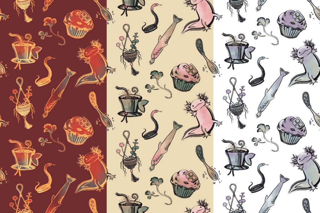 Prey and predator, pattern design, digital, 2025