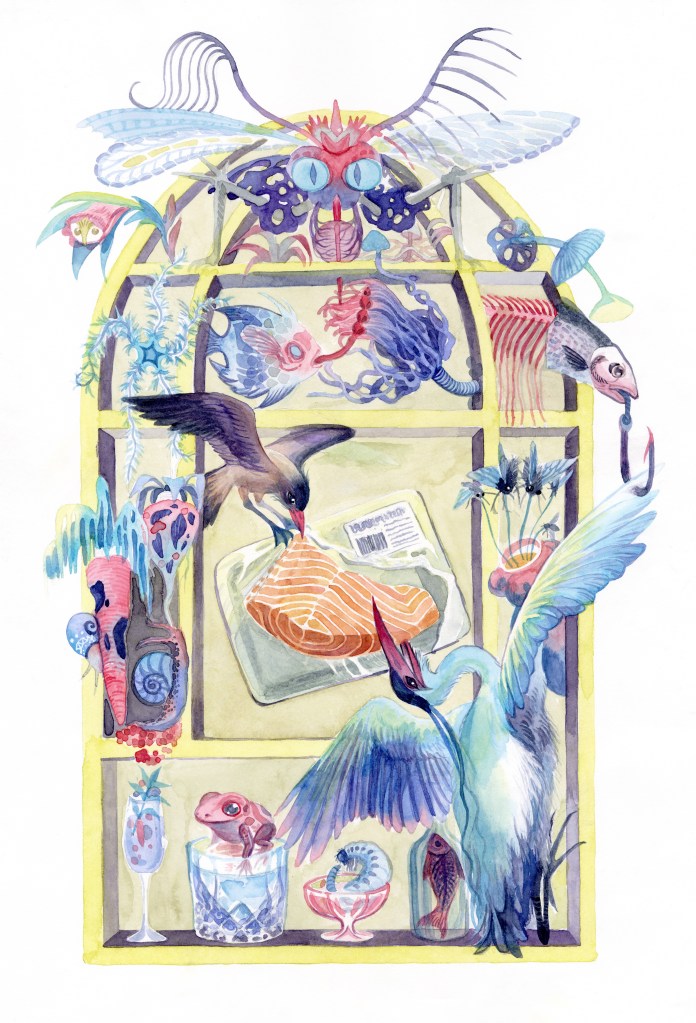 Modern Birds, from my senior thesis “Shan’s Cabinet of Wonder”, watercolor, 2024-2025