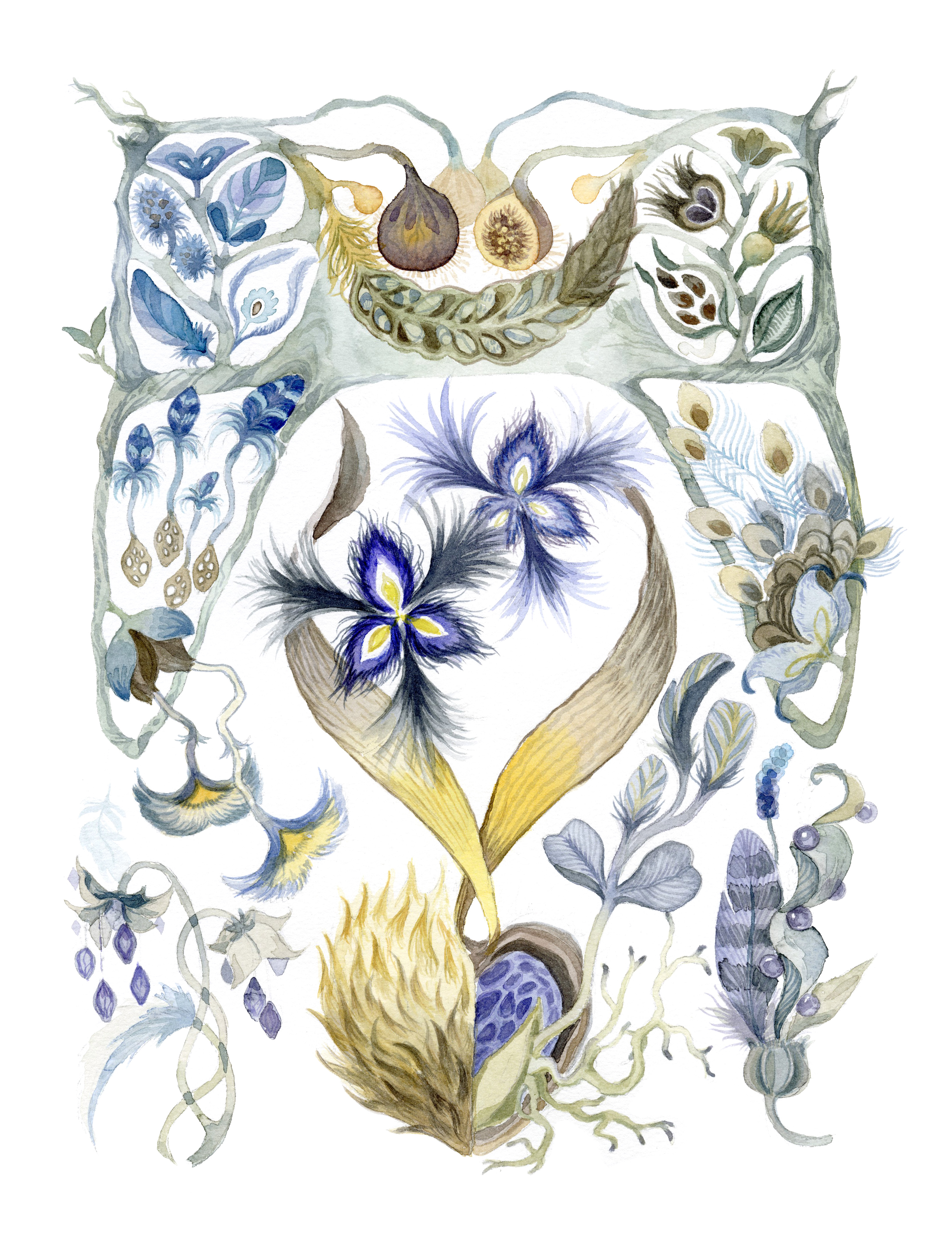Seeds and Feathers, from my senior thesis “Shan’s Cabinet of Wonder”, watercolor, 2024-2025